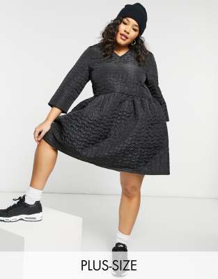 Daisy Street Plus mini smock dress in quilted heart jacquard