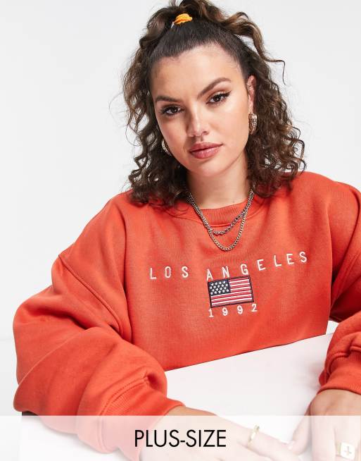 Daisy Street Plus relaxed oversized sweatshirt with LA graphic co-ord