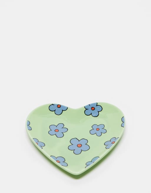 Daisy Street blue floral heart shape trinket dish in green