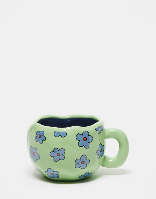 Daisy Street blue floral wavy mug in green