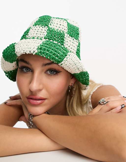 Daisy Street checkerboard crochet bucket hat