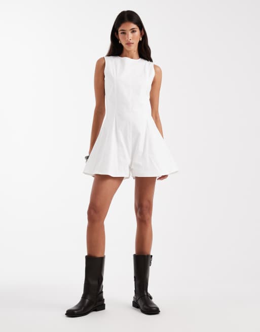 Daisy Street high neck poplin playsuit in white