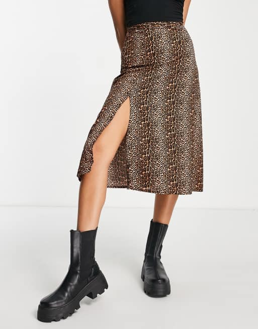 Daisy Street midi skirt with thigh split in grunge leopard