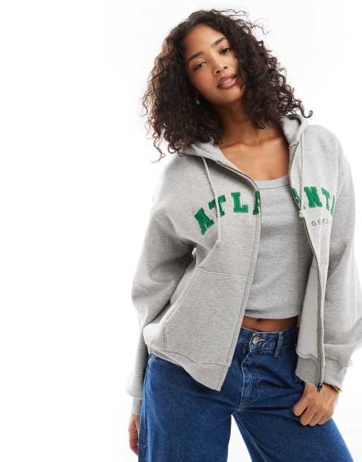 Daisy Street oversized hoodie with atlanta graphic in grey