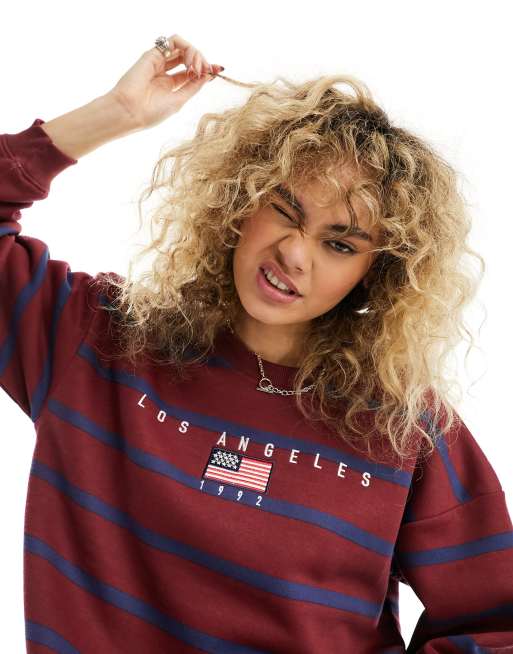 Daisy Street oversized sweatshirt in navy burgundy stripe with LA graphic