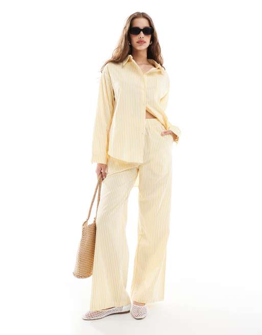 Daisy Street pull on low rise straight leg trousers in yellow stripe co-ord