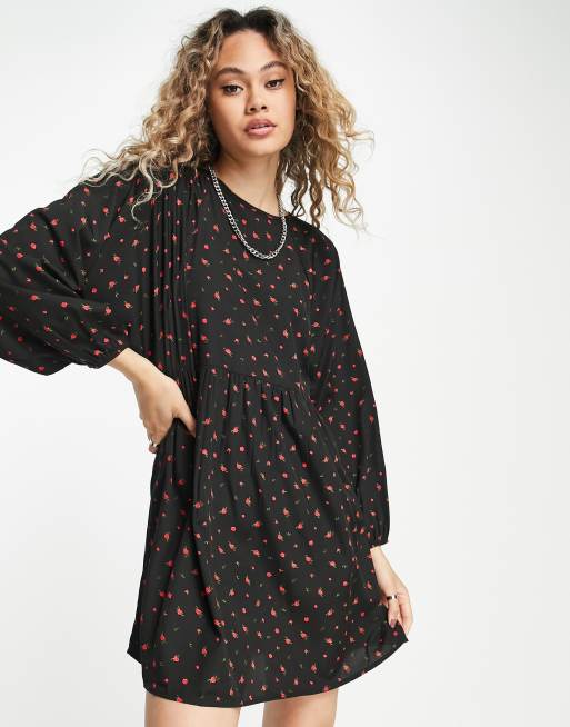 Daisy Street relaxed smock mini dress in 90s ditsy red floral