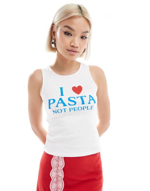 Daisy Street rib racer vest with pasta graphic in white