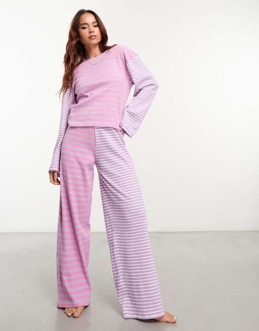 Daisy Street rib stripe mix long sleeve trouser pyjama set with gift bag