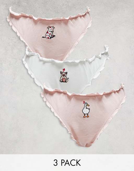 Daisy Street ruffle detail multi pack briefs in cute animal graphic