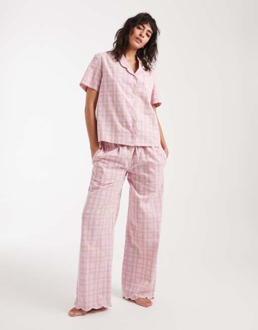 Daisy Street short sleeve pyjama set in pink check