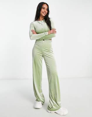 Daisy Street v waist fitted trousers in stretch velvet sage co-ord
