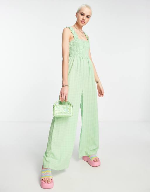 Daisy Street wide leg relaxed jumpsuit with shirring bust in apple green