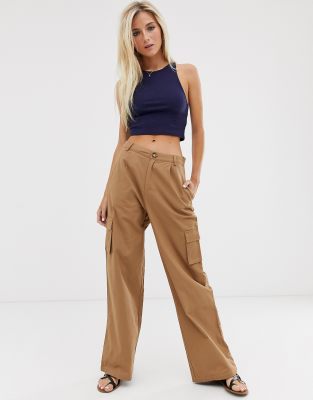 Daisy Street wide leg trousers with patch pockets in brown