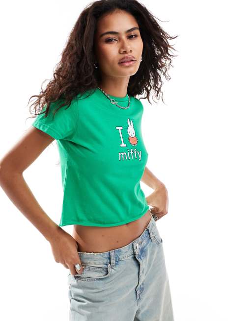 Daisy Street x Miffy cropped baby tee in green with I love Miffy graphic