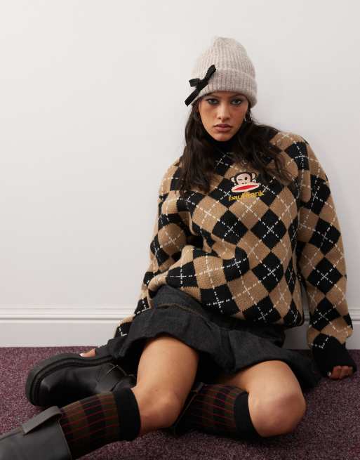 Daisy Street x Paul Frank knitted argyle jumper with embroidered logo