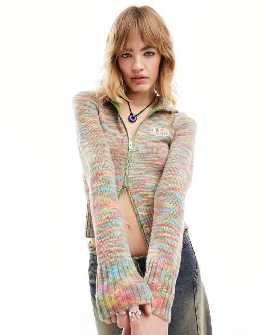 Daisy Street zip front fitted cardigan in space dye knit