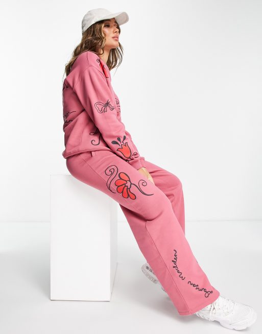 Damson Madder cotton doodle joggers co-ord in washed pink
