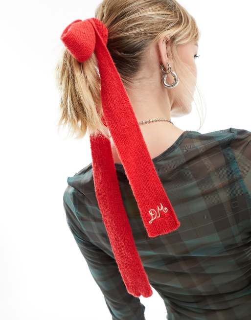Damson Madder knitted bow in red