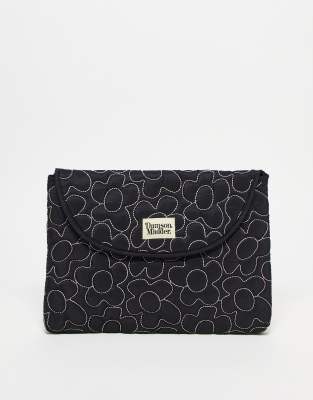 Damson Madder laptop case in black with floral embroidery