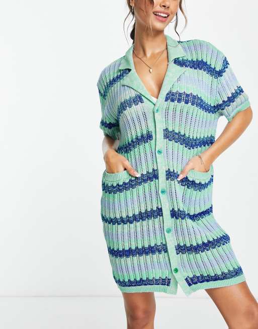 Damson Madder sasha crochet shirt summer dress in blue