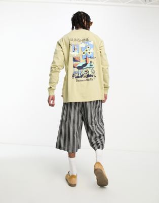 Damson Madder sunshine long sleeve skater t-shirt in light khaki