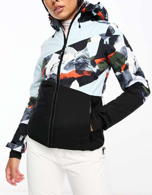 Dare2B Waterproof ski jacket with ski pass pocket in Green and Blue
