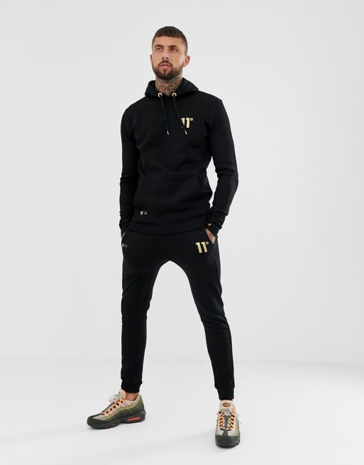 11 Degrees – Schwarzer Trainingsanzug mit goldenem Logo