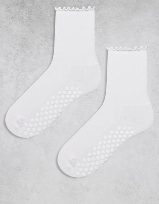 4505 – 2er-Pack rutschfeste Pilates-Crew-Socken in Weiß mit Kräuselsaum