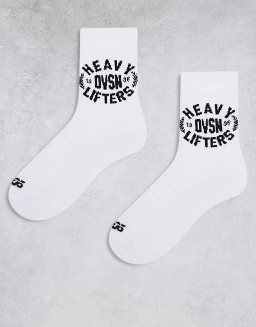 4505 – 2er-Pack Sportsocken in Weiß mit „Heavy Lifting“-Grafik