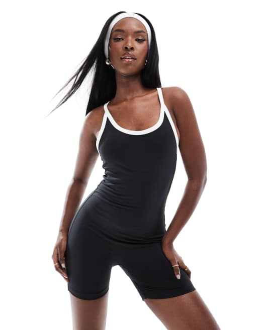 4505 – Court – Weicher Tennis-All in One in Schwarz mit Kontrastbesatz und Innen-BH