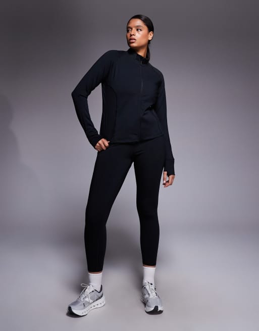 4505 Curve – Icon – Langärmlige, figurformende Sportjacke in Schwarz mit Reißverschluss vorne und an den Taschen