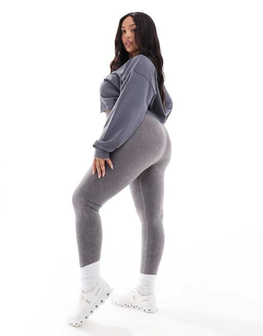 4505 Curve – Icon – Nahtlose, gerippte Sport-Leggings in verwaschenem Grau