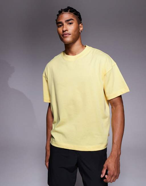 4505 – Gelbes Sport-T-Shirt aus schwerer, schnell trocknender Baumwolle in Cropped-Passform