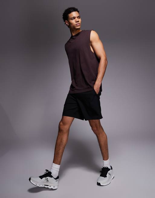 4505 – Icon – Sport-Tanktop aus Baumwolle in verwaschenem Braun mit Oversize-Schnitt und schnelltrocknendem Finish