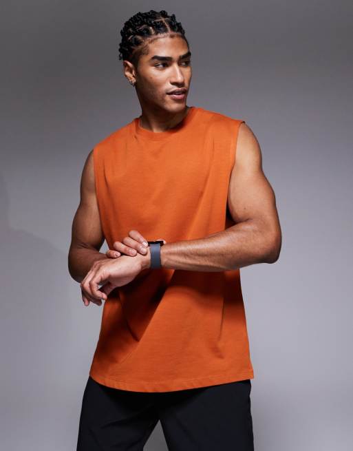 4505 – Icon – Tanktop fürs Fitness-Training aus Baumwolle in Terrakotta mit schnelltrocknendem Finish und Oversize-Passform