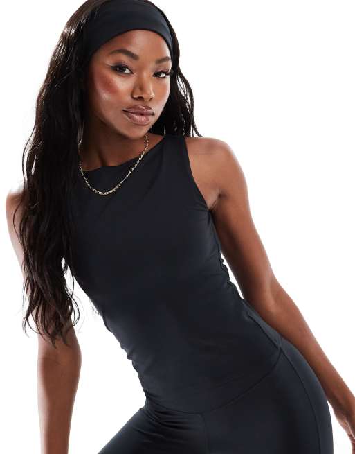 4505 – Icon – Weiches Tanktop in Schwarz mit Innen-BH und U-Boot-Ausschnitt