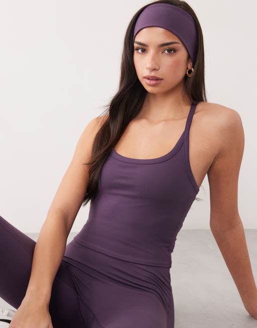 4505 – Icon – Weiches Yoga-Camisole in Dunkellila mit integriertem BH und verstellbaren Trägern