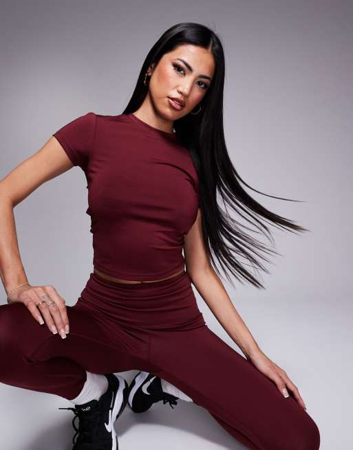 4505 – Knapp geschnittenes Sport-T-Shirt in Burgunderrot mit kurz angeschnittenen Ärmeln