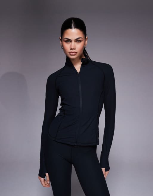 4505 – Langärmlige, weiche und formende Reißverschlussjacke in Schwarz mit Rippmuster