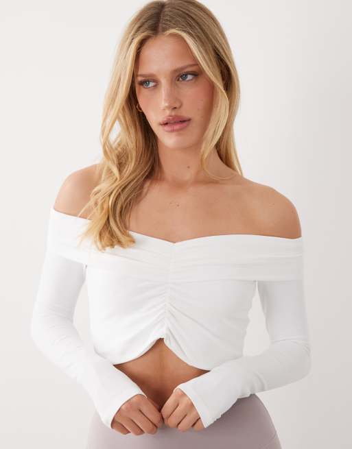 4505 – Langärmliges, flauschiges Oberteil in Weiß mit geraffter Vorderseite