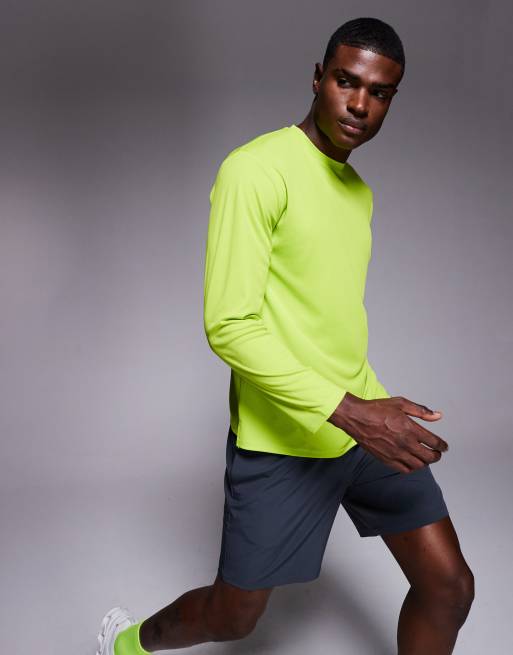 4505 – Langärmliges Relaxed-Fit-Lauf-T-Shirt aus schnelltrocknendem Funktions-Netzstoff in Acid-Grün