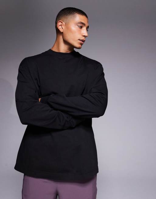 4505 – Langärmliges Trainings-T-Shirt aus Baumwolle in verwaschenem Schwarz mit schnell trocknendem Finish und Oversize-Passform