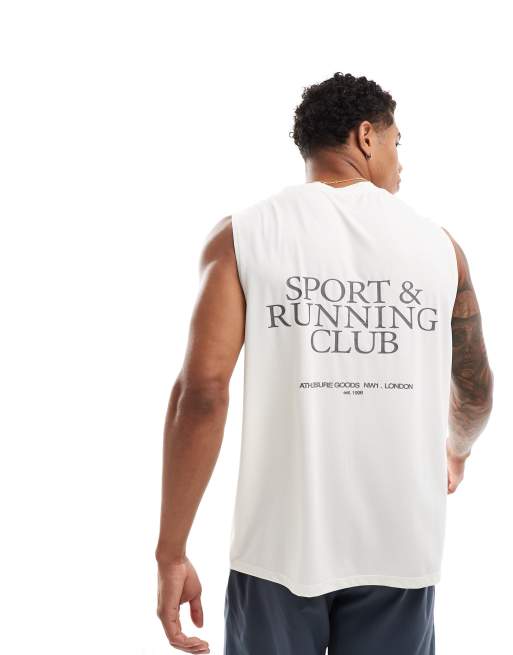 4505 – Lauf-Tanktop aus Netzstoff in Wollweiß mit lockerem Schnitt und Rückenprint