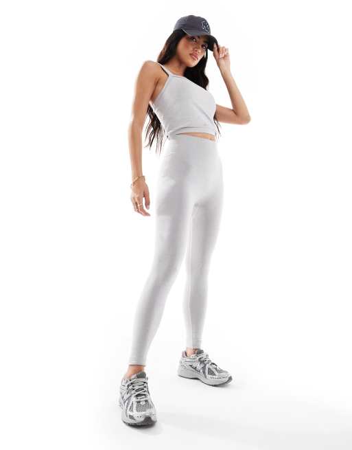 4505 – Nahtlose Sport-Leggings in meliertem Grau mit hohem Bund