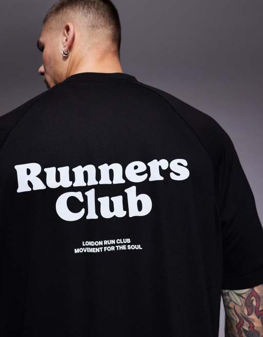 4505 – Run Club – Schnell trocknendes Sport-T-Shirt in Schwarz mit Oversize-Passform und Rückenprint
