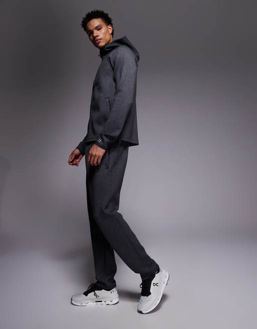 4505 – Schmal zulaufende Jogginghose aus Material in Neoprenoptik in meliertem Anthrazit mit Reißverschlusstaschen
