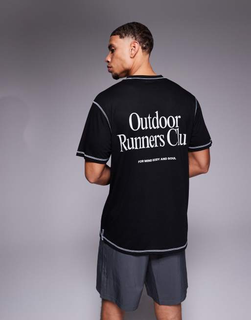 4505 – Schnell trocknendes Netzstoff-T-Shirt in Schwarz mit „Outdoor Runner“-Rückenprint