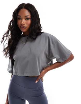 ASOS 4505 – Icon – Schweres, schnelltrocknendes T-Shirt in Grau mit kurzem, kastigem Schnitt