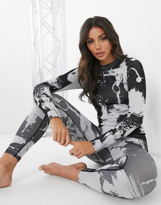 ASOS 4505 – Ski-Baselayer-Set mit schwarzweißem Farbspritz-Muster
